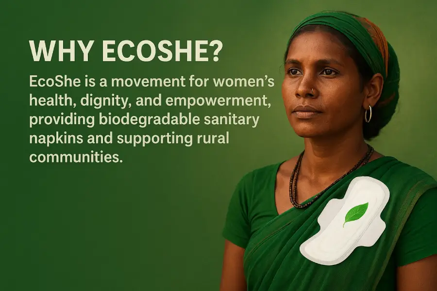 EcoShe is more than just a biodegradable pad — it’s a movement for women’s health, rural empowerment, and environmental care. Every choice you make supports women’s dignity, creates livelihoods for tribal communities, and protects nature from harmful waste.